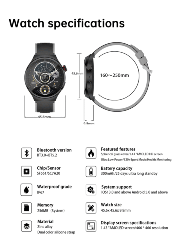 OR4 PRO Smart Watch (Smart Flagship Health Navigation): Round Spherical Cover Design, 1.43″ AMOLED Screen, SF561 Main Chip + Dafit200, 120+ Sport Modes & Extra Long Battery