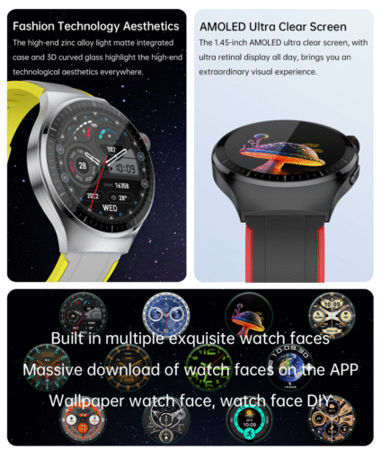 OR4 PRO Smart Watch (Smart Flagship Health Navigation): Round Spherical Cover Design, 1.43″ AMOLED Screen, SF561 Main Chip + Dafit200, 120+ Sport Modes & Extra Long Battery